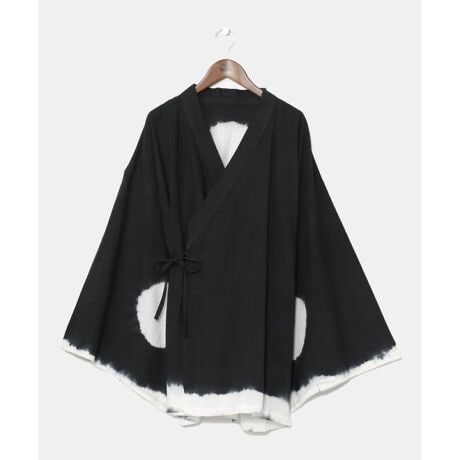 [型番:7IA-4216-2024]夏祭りをテーマにしたシリーズの甚平型羽織り。生地は浴衣の布を模した綿素材を使用し、三種類の絞り染め柄で日本の夏の雰囲気を引き出しています。 ユニセックスで着用可能でき、同じシリーズのパンツとセットで着るとより和の装いを楽しめます。サイドポケット付き。UVカット加工が施されているので、強い日差しでも安心です。UVカット加工