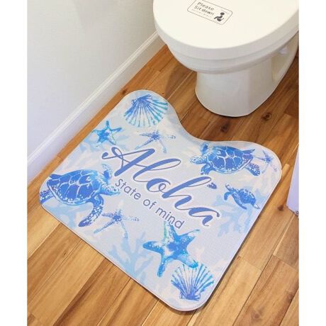 [型番:42UP9351-2024]ハワイの街並みを思い出すデザインのトイレマット。防水で汚れてもサッと拭くだけでお手入れ簡単です。おうち時間をハワイのような癒し時間に。