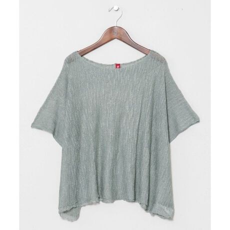 風を感じるネップニットのポンチョ型トップス。程よい透け感で暑い日も涼しく快適に着用可能。ノースリーブとの重ね着にぴったりで、軽やかなレイヤードスタイルが楽しめます。