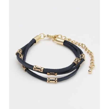 [型番:CKOZ4637-2024]フェイクスウェードとメタルパーツがバランスよく組み合わさった重ね付け風ブレスレット。上品な手元のアクセントに。
