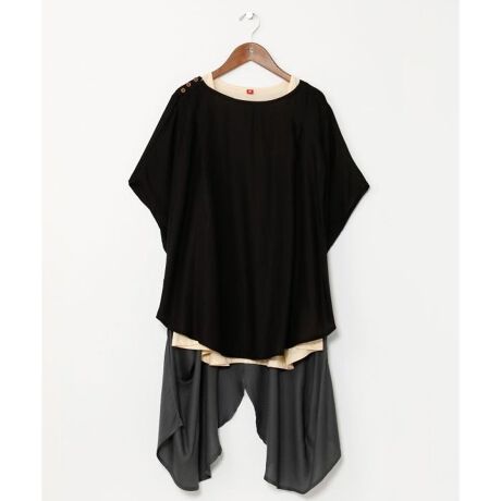 燕尾型のバックスタイルが他にはない斬新なデザインのセットトップス。レーヨンモス素材で高級感たっぷり。右肩のココナッツボタンや、微配色でさりげない個性を発揮できる一枚です。嬉しいインナー付き。