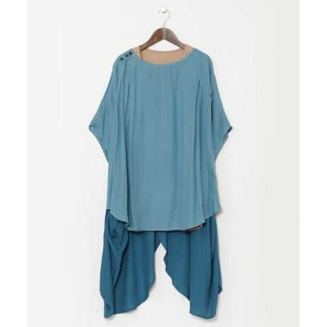[型番:IAT-4102-2024]燕尾型のバックスタイルが他にはない斬新なデザインのセットトップス。レーヨンモス素材で高級感たっぷり。右肩のココナッツボタンや、微配色でさりげない個性を発揮できる一枚です。嬉しいインナー付き。