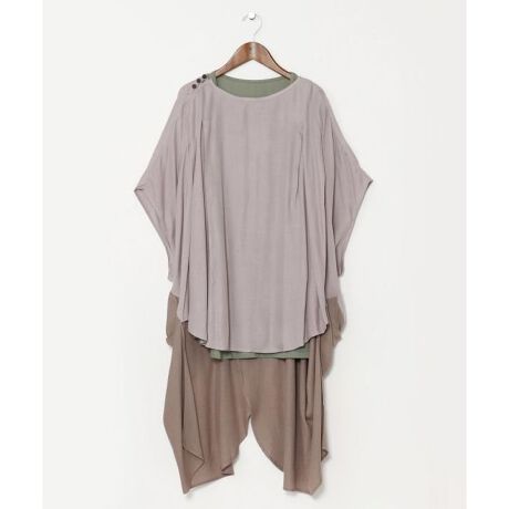 燕尾型のバックスタイルが他にはない斬新なデザインのセットトップス。レーヨンモス素材で高級感たっぷり。右肩のココナッツボタンや、微配色でさりげない個性を発揮できる一枚です。嬉しいインナー付き。