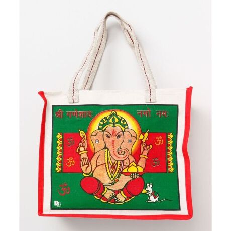 [型番:TLGP3701-2024]ヒンディー語のプリントと大胆な色使いが印象的なトートバッグ。