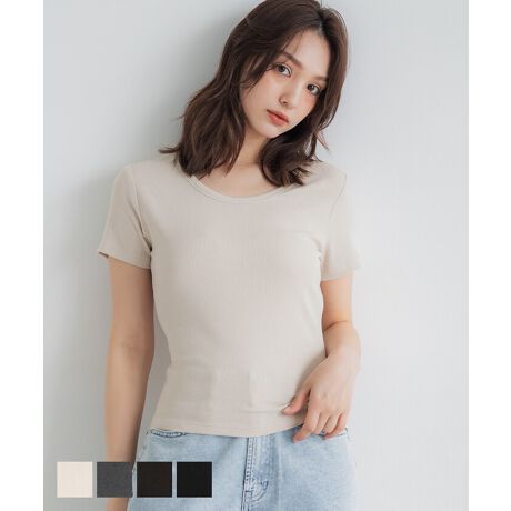 ・とろみのあるなめらかなリブカットソー素材で直接肌に触れても心地いい一枚