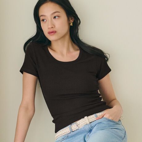 とろみリブUネックTシャツ 全4色