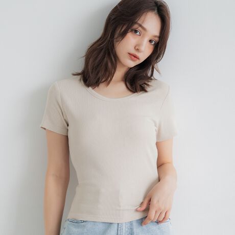 ・とろみのあるなめらかなリブカットソー素材で直接肌に触れても心地いい一枚
