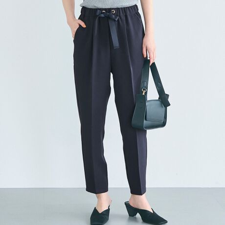 ウエストリボン付きでキュートなテーパードパンツ