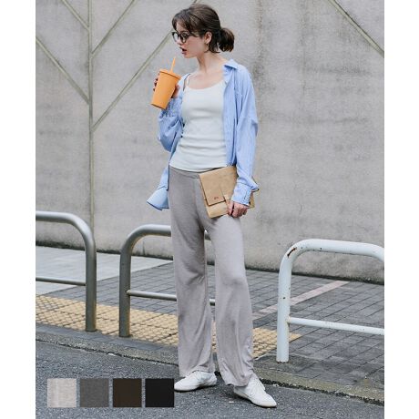 ボディラインを拾いすぎない綺麗なストレースシルエットのイージーパンツ。