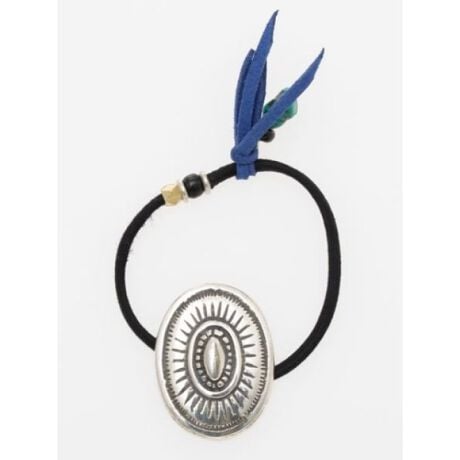 ネイティブアメリカンが創り出すコンチョをモチーフとしたヘアオーナメント。ヴィンテージ感たっぷりの光沢が魅力。革のタッセル付きでブレスレットとして使うのもおすすめ。