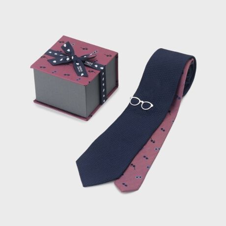 【BOXセット限定】メガネモチーフ ネクタイ&タイバー セット