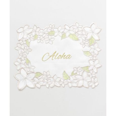 [型番:45WP4201-2024]シェルやプルメリア、ハワイのモチーフを刺しゅうしたレースのプレイスマット。上品な雰囲気のデザインが食卓に彩りを添えてくれます。シリーズで揃えたり、ギフトにもおすすめです。大切なオハナとのひと時にお使いください。