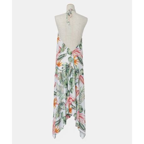大人っぽいリゾート感のあるボタニカル柄をプリントしたワンピース。程よいストレッチ感と軽さが特徴。ゆったりとしたシルエットが風に揺れ、上品な印象を感じさせてくれます。背中がざっくりとあいており普段使いはもちろん水着の上から着用することも可能なため着脱が簡単。
