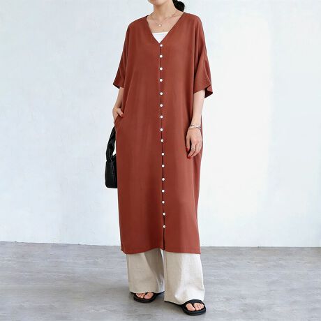 足首までカバーするロングな丈感で、一枚でデイリーに使いやすいアイテム。