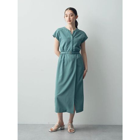 フロントのダブルポケットにタックデザインが目を惹くワンピース。