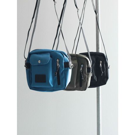 バッグのフロント部分には、立体的なポケットとジッパーポケットが配置されています。
