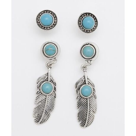 [型番:46CZ4221-2024]身に着けることで友情や真実を得られるとされるラッキーアイテムのフェザーモチーフと、海を感じさせるターコイズカラーを組み合わせたの4点セットのピアス。アンティークメタルは肌に馴染み、デイリーに使いまわせます。その日の気分やコーディネートでアレンジが楽しめる一品。