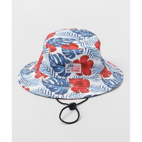 [型番:49DP4201-2024]ビーチやプールにもぴったりな素材感のハット。鮮やかなハワイの植物がポイント。つばも広いのでアクティブシーンやお出かけにおすすめです。サイズ調整可能/撥水仕様