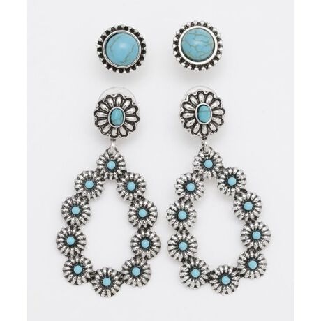 [型番:46CZ4227-2024]海を感じさせるターコイズカラーとアンティークメタルを組み合わせた、4点セットのピアス。大判のティアドロップモチーフがポイント。その日の気分やコーディネートで自由な組み合わせを楽しめます。