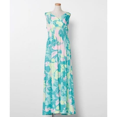 《Ocean Blue Bird-オーシャンブルーバード-》 カシュクールの上半身がすっきりと美しいシルエット。切替えにより胸元が広がりすぎず程よく安定したVネックに仕上がります。高めのウエスト切替えでスタイルアップ。程よいフレア感で動きやすく上品なデザインです。足下からの着脱が可能です。メイクやヘアスタイルを崩しません。「プアアロアロ」ビビッドカラーを効かせたダイナミックなハイビスカス(アロアロ)のアートワーク。幾重にも重ねた奥深い色層がポリネシアンムードを際立たせます。ヴィンテージ・ムウムウを想わせるノスタルジックさとトレンド感をミックスしたデザインに仕上げました。