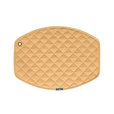 カラーバリエーション豊富な大人気GLUTTONシリーズのプレイスマット。 キルティングの柔らかさを感じつつも、丸みを抑えた形状に仕上げることで、ハードな印象をプラス。食卓を絶妙なバランスで賑やかにしてくれます。 収納時にかさばりがちなキルティング地も、S字フック等で吊り下げ保管が出来るように真鍮のハトメを施しました。 食卓やアウトドアシーンに、程よい存在感で馴染んでくれるランチョンマットを。