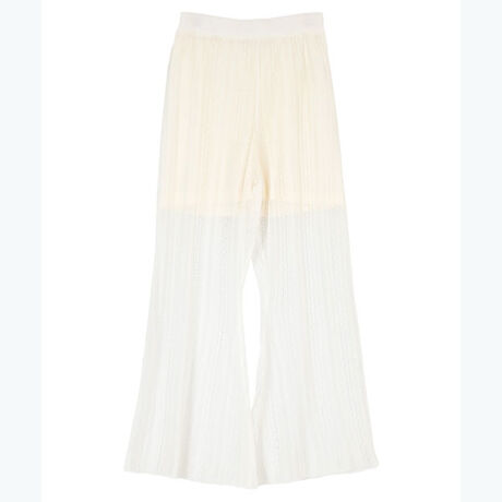・ウエストゴムで履き心地が良い。・フレアに広がるので美脚効果あり。・縦ラインの透かし編柄なので足を細く見せる。・さらっとした素材感。[型番:ADXP3981]