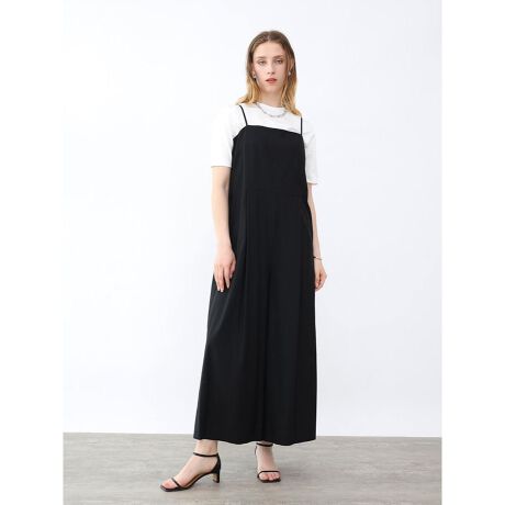 大人のリラックス感がありながらも、ミニマルなバランスに仕上げたキャミソールオールインワン。パンツ部分は程よくゆとりがありつつも、ウエスト下にタックを施しすっきりとした脚線にこだわりました。華奢なストラップとバックバンド、前後で異なる身頃のカッティングが女性らしい雰囲気をキープ。ストラップはアジャスター仕様で、合わせるトップスやシューズに応じて着丈を調整可能です。