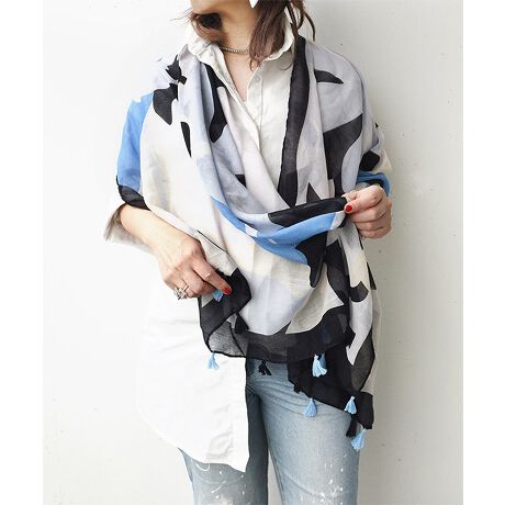 春夏のUV対策に。タッセル付き 柄ストール スカーフ 花柄 幾何学 エスニック柄 母の日 プレゼント