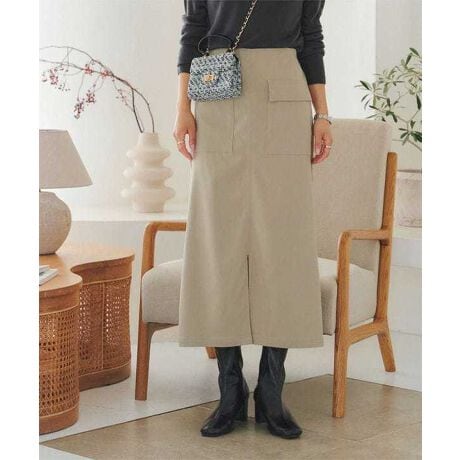 すとんと落ちるIラインで気になる身体の形を拾い過ぎない、万能スカートです◎