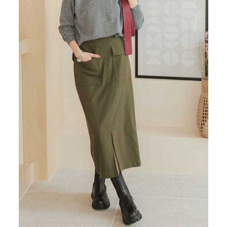 すとんと落ちるIラインで気になる身体の形を拾い過ぎない、万能スカートです◎