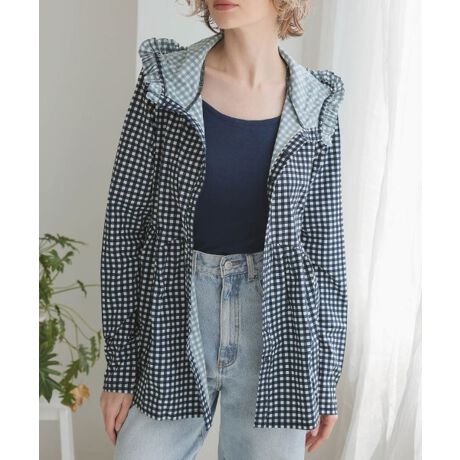 小さめのフリルが一周施されたフードは、被るとよりしっかりと紫外線から守ってくれます。