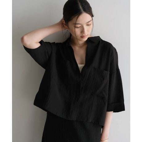 リネンブレンド 短丈 シアー シャツ ブラウス