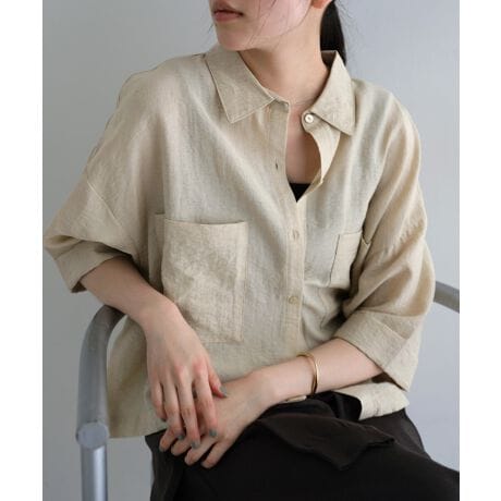 リネンブレンド 短丈 シアー シャツ ブラウス