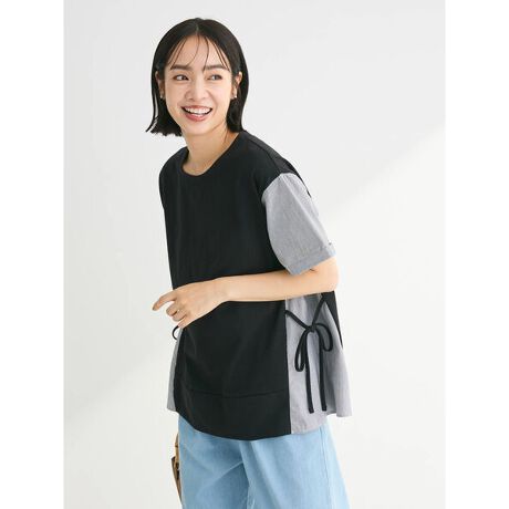 レイヤード風の布帛ドッキングデザインも、スタイリングにこなれ感を漂わせます。