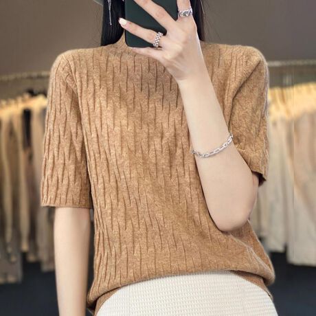シンプルなデザインでどんなコーデにも馴染む五分袖ニット。<br>すっきりとしたハーフタートルネックが女性らしい一着です。<br>程よくスリムなシルエットが、きれいめな印象をプラス◎<br>パンツにもスカートにもマッチして着回ししやすいので、一着持っておくと重宝するアイテムです♪<br><br>■注意事項<br>・お使いのモニターや端末により、質感・色合いが実際の商品と異なって見える場合がございます。<br>・表記サイズは測り方によって1〜2cmの誤差が生じる場合がございます。ご了承くださいませ。<br><br>#モックネック