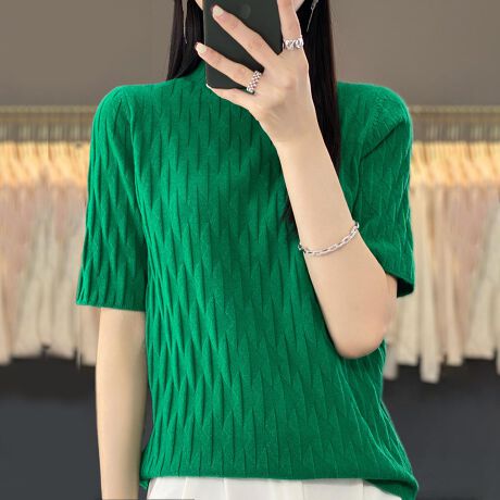シンプルなデザインでどんなコーデにも馴染む五分袖ニット。<br>すっきりとしたハーフタートルネックが女性らしい一着です。<br>程よくスリムなシルエットが、きれいめな印象をプラス◎<br>パンツにもスカートにもマッチして着回ししやすいので、一着持っておくと重宝するアイテムです♪<br><br>■注意事項<br>・お使いのモニターや端末により、質感・色合いが実際の商品と異なって見える場合がございます。<br>・表記サイズは測り方によって1〜2cmの誤差が生じる場合がございます。ご了承くださいませ。<br><br>#モックネック