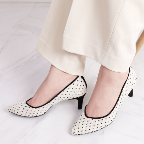 シフォンジョーゼット/ドットチュール ポインテッドトゥパンプス