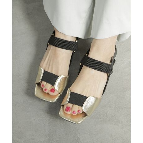 片手で履ける!5cmヒールのゴムベルトサンダル