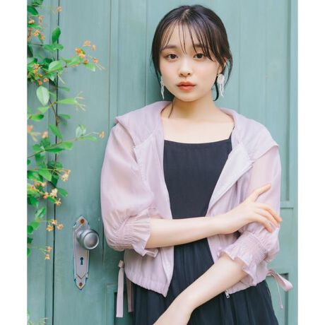 ボリュームのあるキャンディスリーブで甘さを加えたサイドリボンパーカー【Design】・サイドリボンで丈感をアレンジできるシアーパーカー。・ボリュームのある袖をきゅっとしぼったキャンディスリーブが、スウィート感を演出します。・ふんわりと広がるスリーブで、二の腕もさりげなくカバー◎・手首の部分がシャーリングゴム仕様になっているので袖丈を調節できます。・ワンピースやボトムスともバランスの取りやすいショート丈。・春夏のアウターとしてはもちろん、空調対策としても活躍してくれます。・フロントファスナー仕様。フード付き。【Fabric】・シアー感のある素材を使用。・ご自宅でお手入れが出来るのも嬉しいポイント♪・ホワイト、ピンク、ブラックの3色展開となります。【Care】手洗い可能