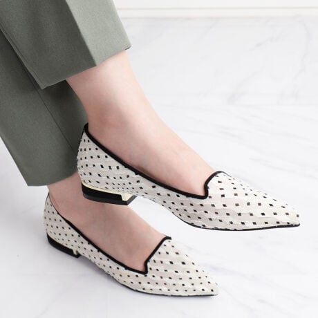 ・クラシカルなオペラカットがほんのりマニッシュなフラットシューズ。