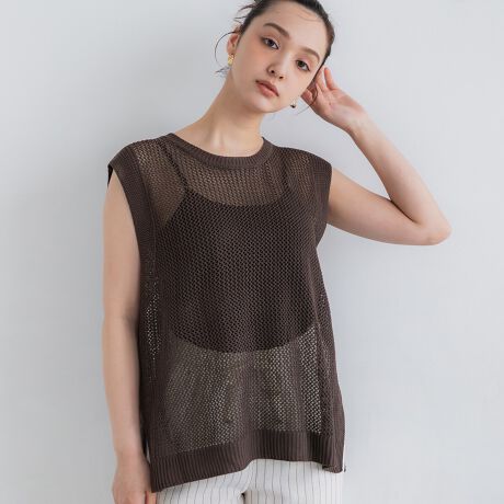 クルーネック×袖なしのすっきりとしたシルエットで、Tシャツやワンピースとのレイヤードにぴったり。