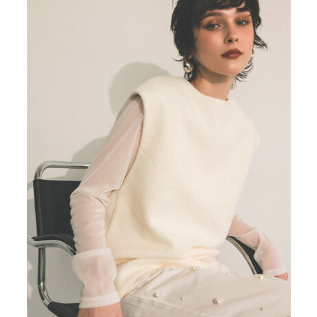 表情のあるブークレ糸を使用し、立体的なシルエットを演出。