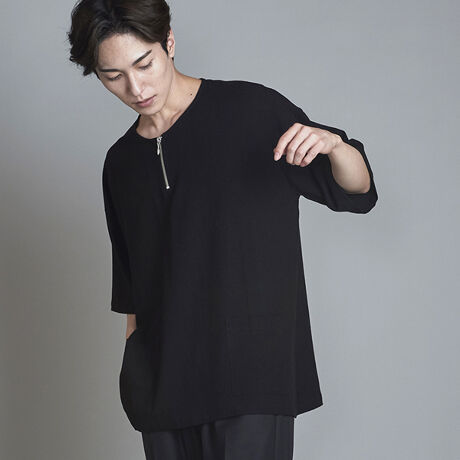 晩夏らしい清涼感のある素材と首元のファスナーデザインが特徴的なプルオーバーカットソー。