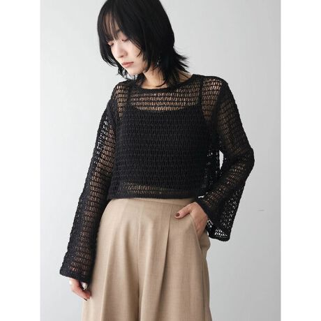 ざっくりとしたクロシェ編みが可愛らしいロングスリーブトップス。