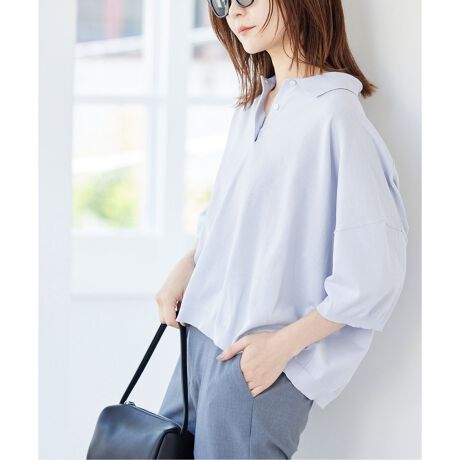 ・柔らかいカラーがスローブらしいニットポロシャツ。