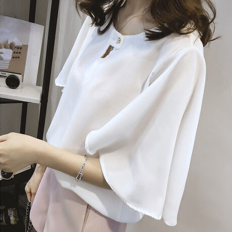 ゆったりとしたフレアスリーブが涼し気な印象を与えてくれますね。<br>