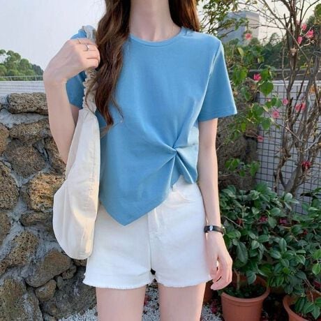 アシンメトリー半袖絞りTシャツ