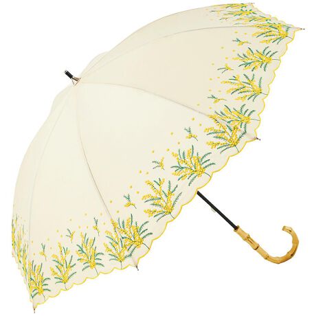 【お洒落を楽しむ全ての女性を応援】真夏の日射しの下で可憐に花咲く・・・。コーデの主役になる「because晴雨兼用パラソル」が新登場!【パラソルも大胆に衣替え】リネン調の素朴な風合いの傘生地に小花の刺繍を散りばめたパラソルで、夏色にパッと衣替え!【紫外線から優しくお肌を保護】キャンバス風のざっくりと編まれた傘生地にはUVカット加工を施し、降り注ぐ紫外線をブロック!※紫外線遮蔽率は90%以上、95%以上、99%以上のものがあり、傘生地のカラーにより異なります。【ふわりと軽い差し心地】太さ約8mmのスリムな中棒と、傘骨には軽量なスチールを採用。ラクラク持ち運べる軽量設計。【スムーズな手開きタイプ】混雑した場所でも傘生地をスムーズかつ、安全に開くことのできる手開き式。【セーフガード機能付きで安心】傘の開閉時に指や爪を傷めないよう、ストッパー部分にはセーフガード機能付き。【ナチュラルな手元ハンドル】優しい曲線が手に馴染む、ホワイトウッド&バンブー手元が、指先にエレガントさをプラス。【たたむ時も手間取らない!】バンドは、クルっと巻いて留めやすいスナップボタン式と、個性的な木製トグルボタンの2種類。【プロヴァンス刺繍】傘生地全体に涼やかな小花の刺繍をあしらった、夏の空に優しく映えるクラフト感のある仕上がり。【フラワーブーケ】色とりどりの花を束ねたブーケの刺繍がワンポイント。可憐な花に包まれて優しい気持ちに。【ミモザ&スズラン刺繍】ふわふわのミモザと上品なスズランの刺繍を生地裾にあしらい、ハッピーで涼し気な夏色コーデを演出!【雨の日でも安心なはっ水生地】軽量な傘生地には水滴を玉のように弾くはっ水加工が施されているので、突然の通り雨でも安心!※生地にははっ水加工を施しておりますが、日傘としての使用を主とした商品です。長時間の雨傘としてのご使用の際にはご注意ください。【夏らしさを演出する優美なカラー】夏空の下で爽やかに映える心が自然に浮き立つ色使いで、清楚でグッと女性らしいコーデを演出!