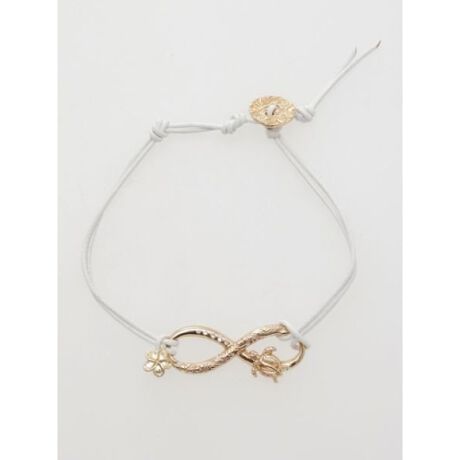 永遠を意味するインフィニティーモチーフ。海の守り神であるホヌと、プルメリア「永遠の美しさ」、スターフィッシュ「永遠の輝き」、波「永遠の愛」、マイレコイン「永遠の絆」のモチーフが付いた4種類のブレスレット。永遠に貴方のお守りとなることでしょう。