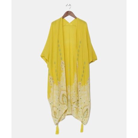 軽やかなレーヨンクレープ素材に「UVカット加工」を施したカーディガン。繊細なプリントと裾に付いたタッセルが、エキゾチックな装いを引き立てます。ゆったりとしたシルエットは風をはらみ、涼しく着られるのもポイント。